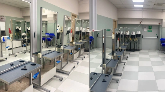 Le aule degli acconciatori sono provviste di lavaggi, caschi, postazioni con specchi in modo che ognuno possa lavorare in autonomia.